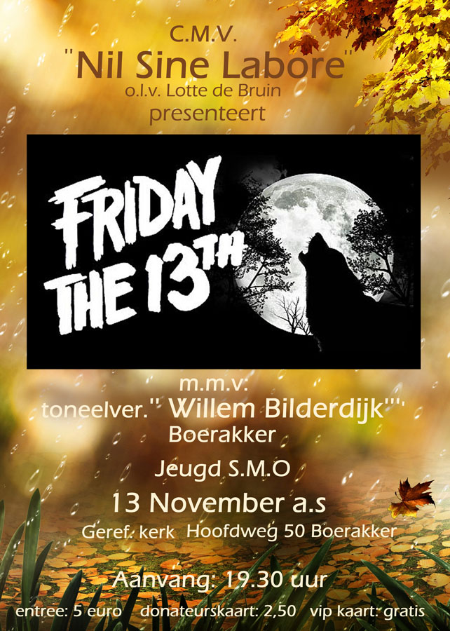 Vrijdagavond 13 november, om 19:30u in de kerk aan de hoofdstraat 50